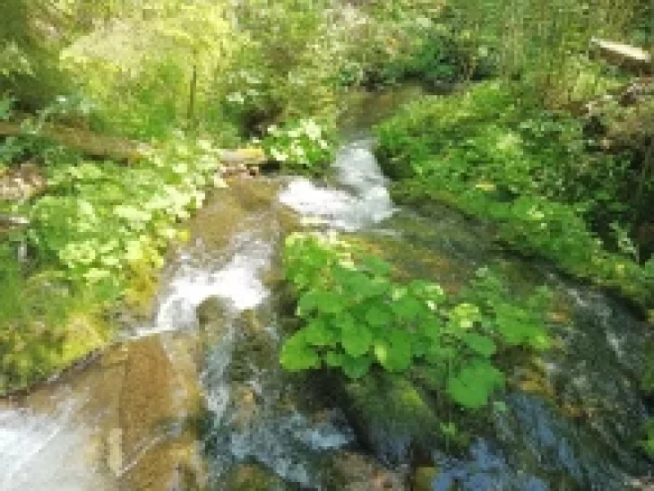 Vcházíme do kouzelného údolíčka obklopeného zvedajícími se svahy plného zvuků bublající vody. Zvláště po deštích dostává toto místo to správné kouzlo. Voda stékající po svazích vytváří mnoho úžasných míst s kapající vodou. Ponechané spadané kmeny přidávají na divokosti zdejší krajiny, které je v naší zemi čím dál méně.